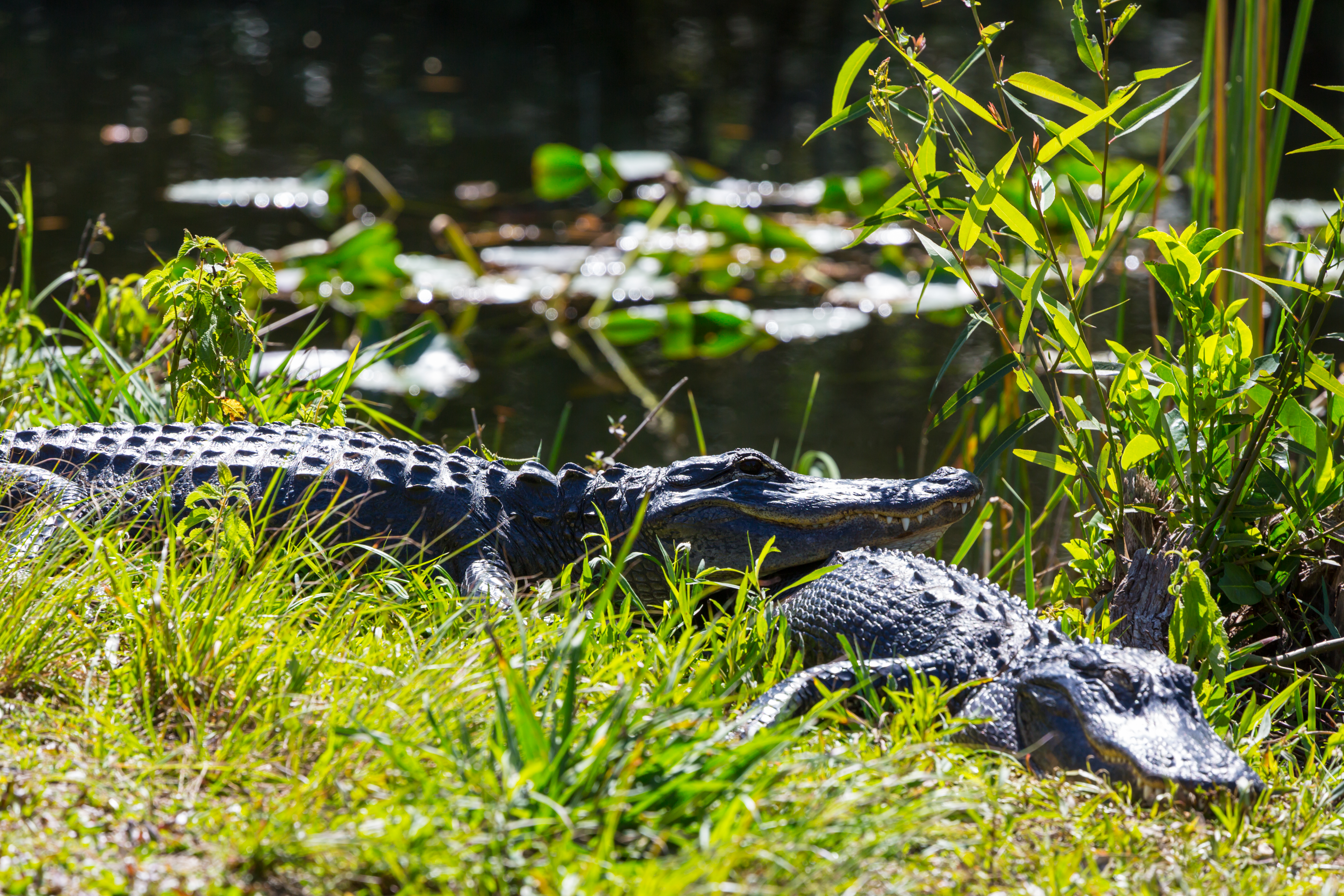 American Alligator Swimming in Everglades with colorful reflection in water wild nature national park