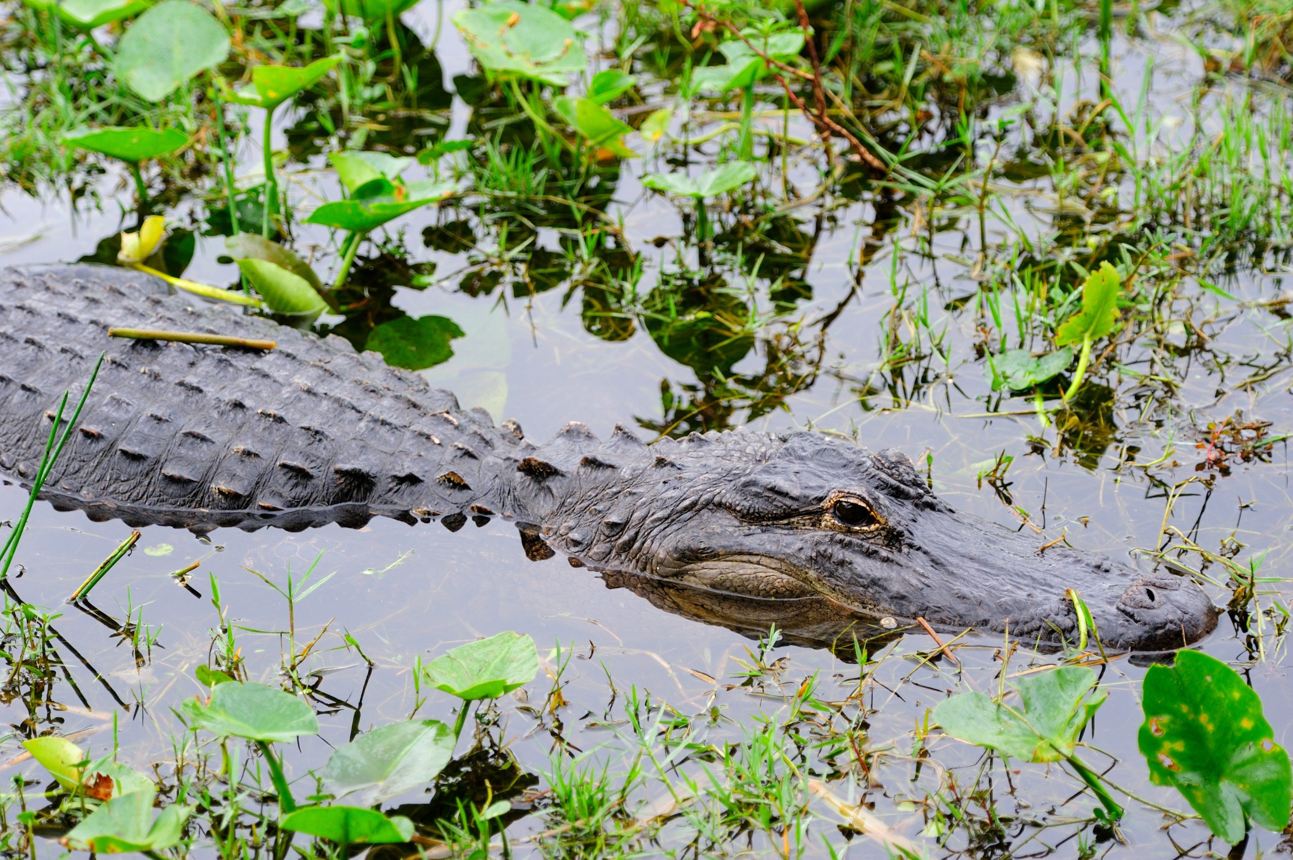 Alligator closeup in wild in Gator Park in Miami, Florida.