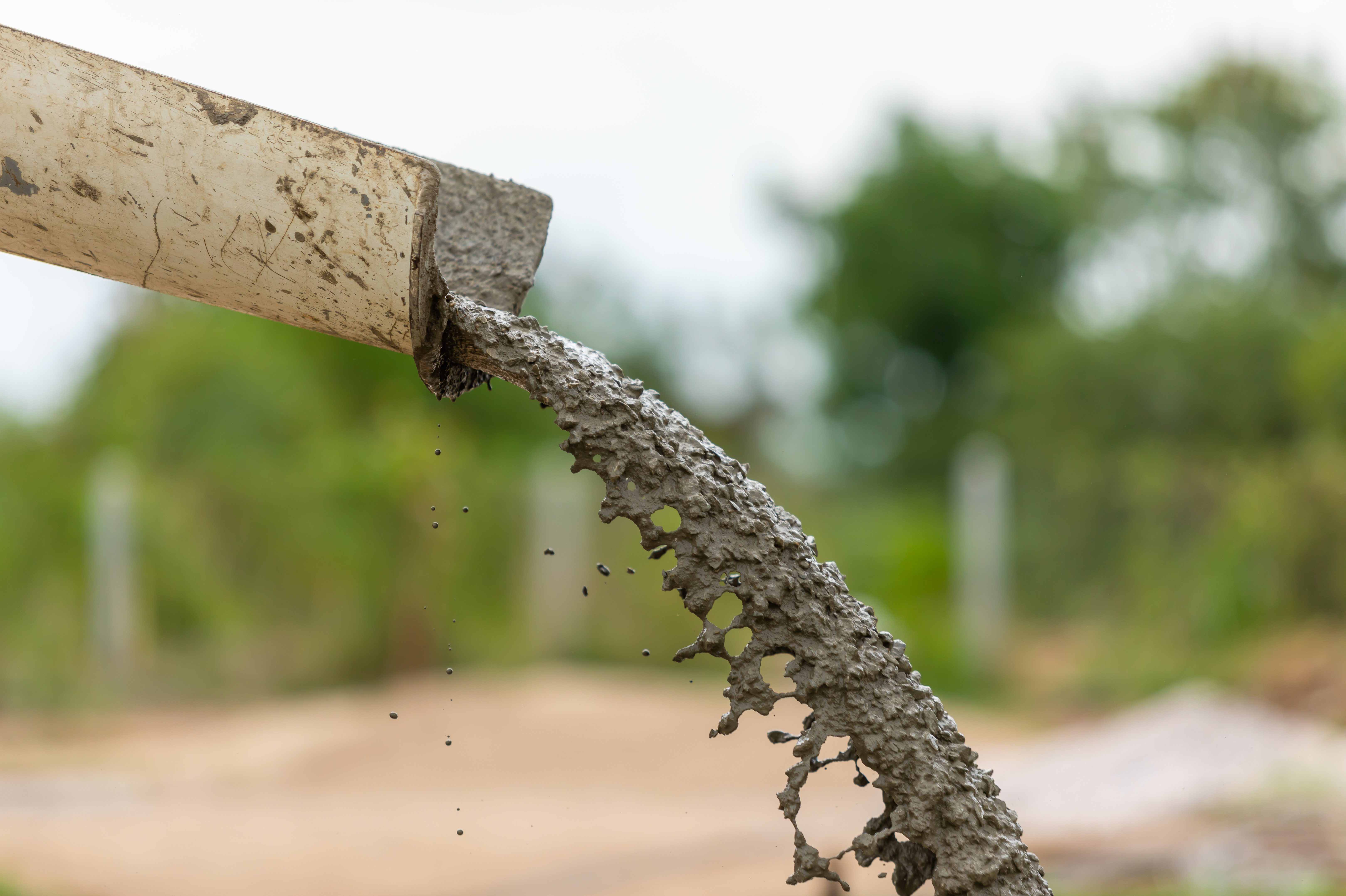 Pouring and sweep the wet cement on the floor in process of hous