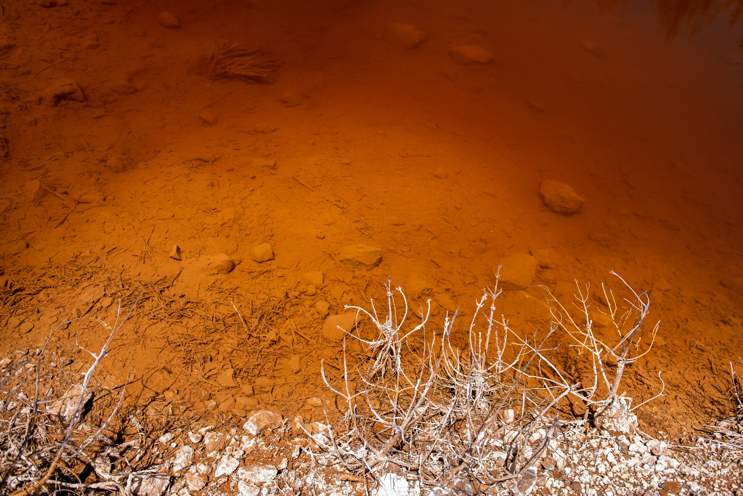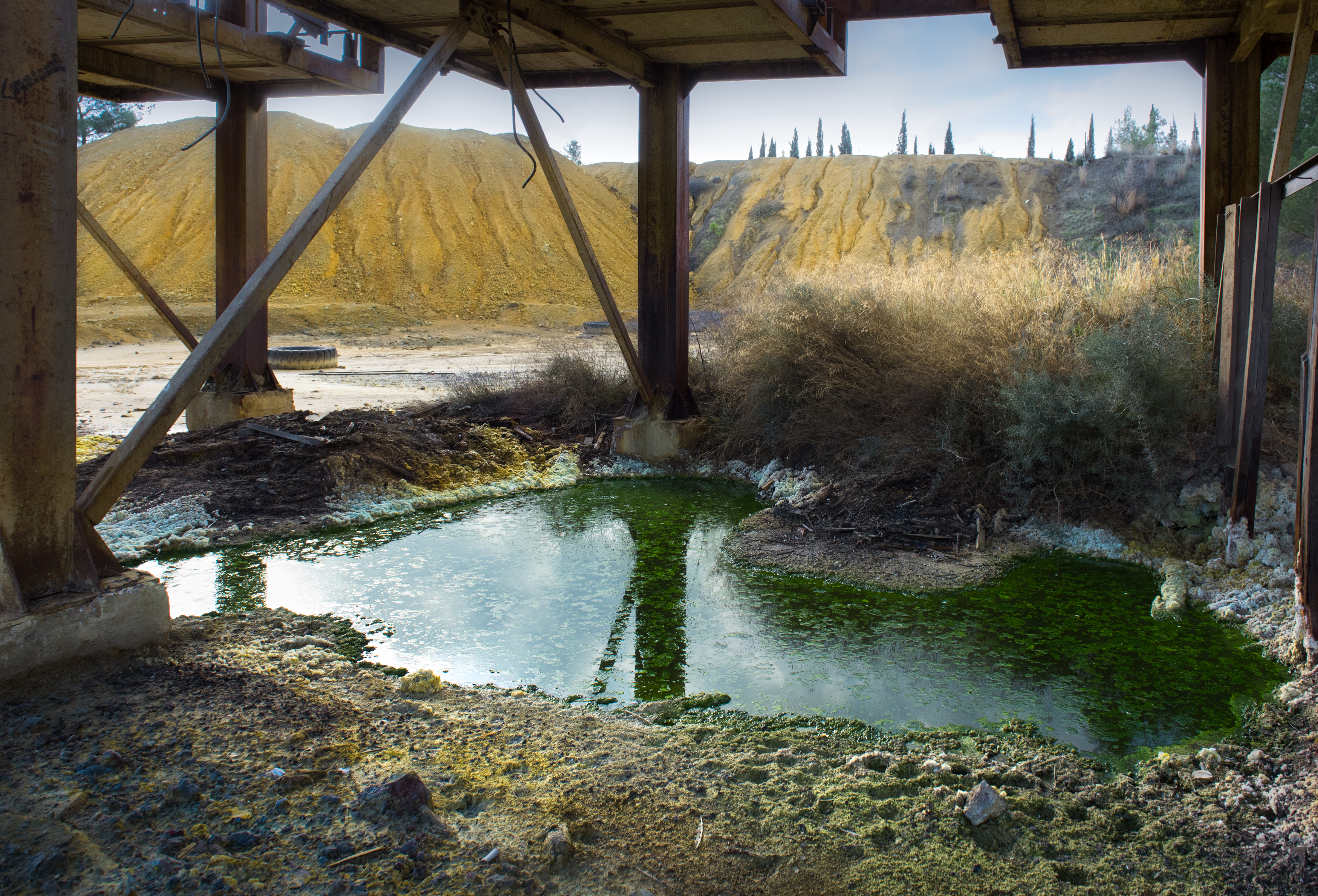 Green acidic pool of toxic waste near abandoned Kokkinogia copper mine in Mitsero, Cyprus